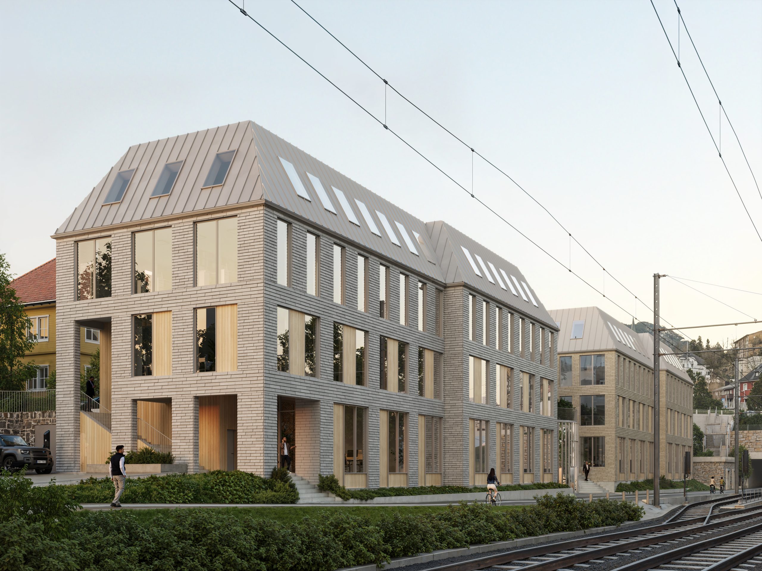 Prosjektet legger stor vekt på stedstilpasning, lokal identitet og arkitektonisk kvalitet. Begge bygningsvolumene benytter tegl i ulike fargetoner, mens trekledning, vinduskarmer og takflater er holdt konsistente for å sikre et helhetlig preg. Mellom byggene planlegges et lavere volum over én etasje med takterrasse, som fungerer som et felles samlingspunkt.
